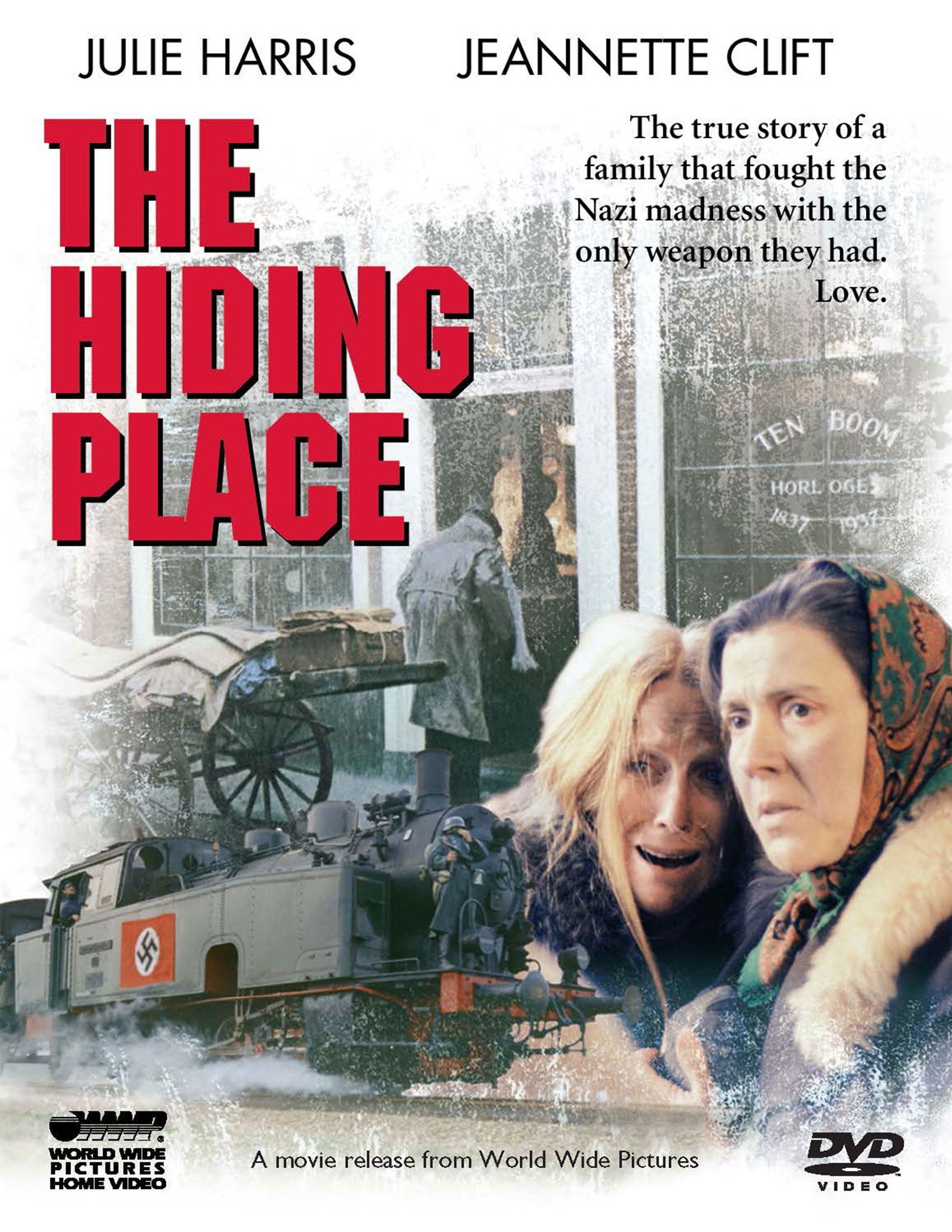 The incredible, heroic story of Corrie ten Boom and her family, who worked with the underground resistance in Holland against the occupying Nazi army, providing a “hiding place” in their home for fleeing Jews.